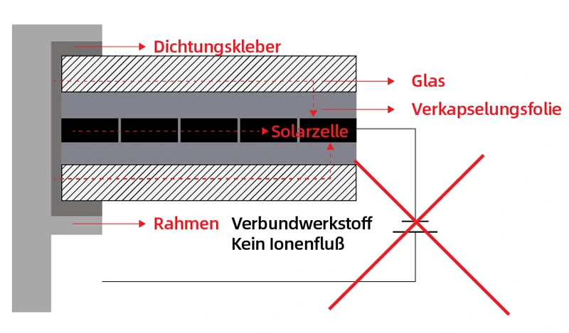 Für Photovoltaikmodule bietet die Verbundrahmentechnologie hervorragende mechanische und chemische Eigenschaften, die es unseren Solarmodulen ermöglichen, höheren Belastungen standzuhalten und sie widerstandsfähiger gegen raue Umweltbedingungen und zunehmende Wetterextreme zu machen. Dank ihrer hervorragenden Isolationseigenschaften reduzieren diese Rahmen effektiv den PID-Wert. Dies ist auch darauf zurückzuführen, dass keine Ionen aus dem Rahmen fließen. Deshalb ist dass keine zusätzliche Erdung erforderlich ist, was die Komplexität und die Kosten der Installation reduziert. Unsere Solarmodule mit Kompositrahmen haben eine Brandschutzklasse bis zur Stufe A und sind TÜV-, UL-, REACH- und ROHS-konform.