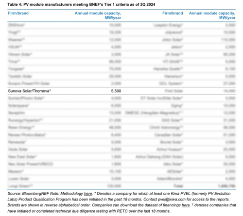 With its 3rd quarter 2024 report, Bloomberg New Energy Finance (BNEF) now has listed Sunova Solar as a Tier 1 module manufacturer for a full year. While other manufacturers failed to fulfil the new criteria of delivering minimum 6 projects with at least 5MW in size or have come into turmoil due to the current difficult business situation, Sunova Solar and Thornova Solar remain well afloat and growing.